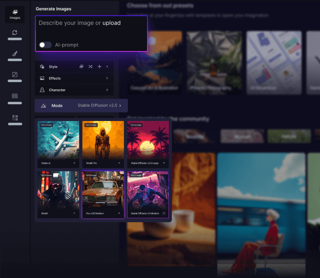 Generate high-quality images that make your site more lively.
