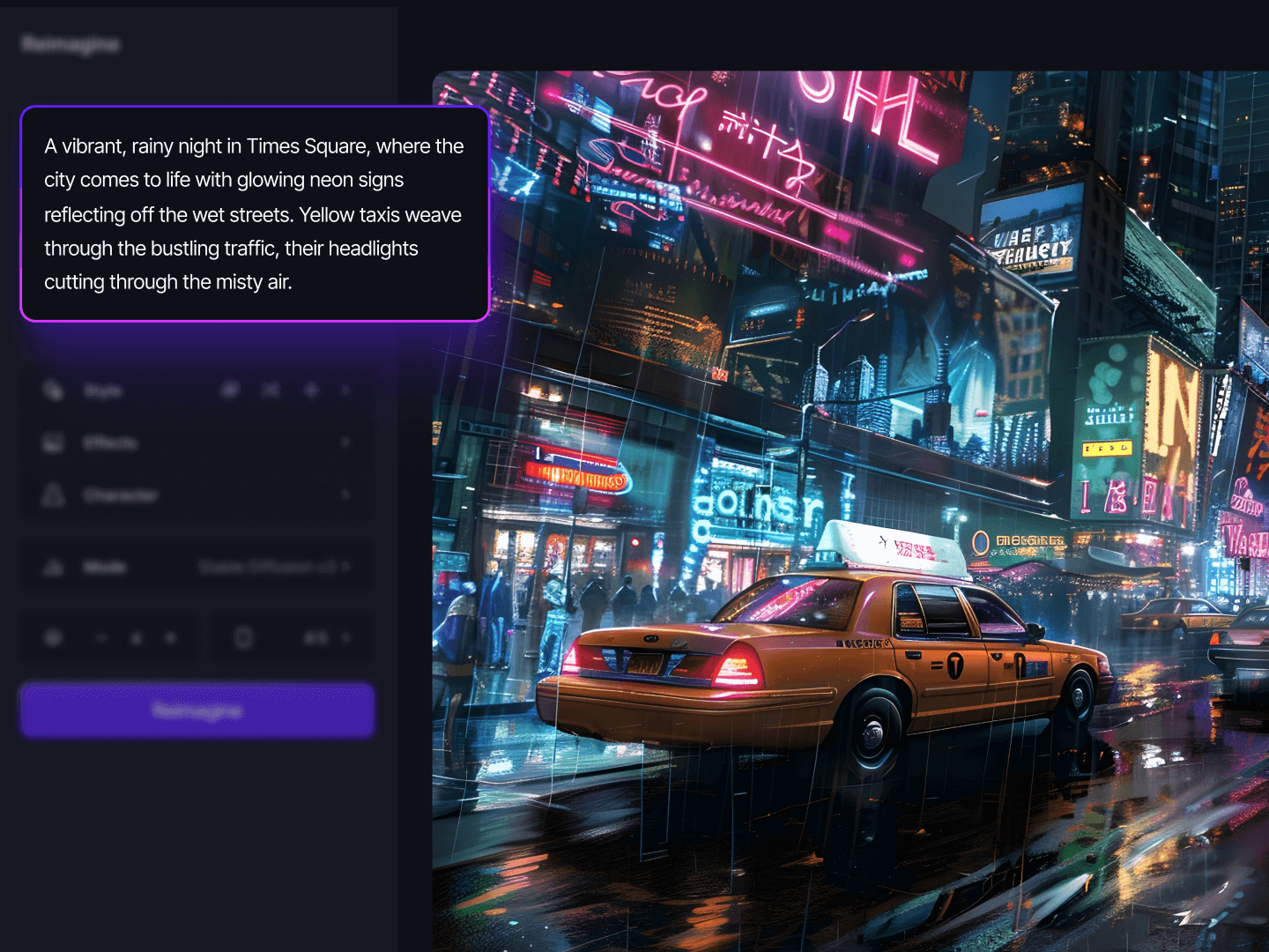 Using AI models, deep learning and advanced algorithms to analyze text descriptions and create high-quality images based on the provided prompts.